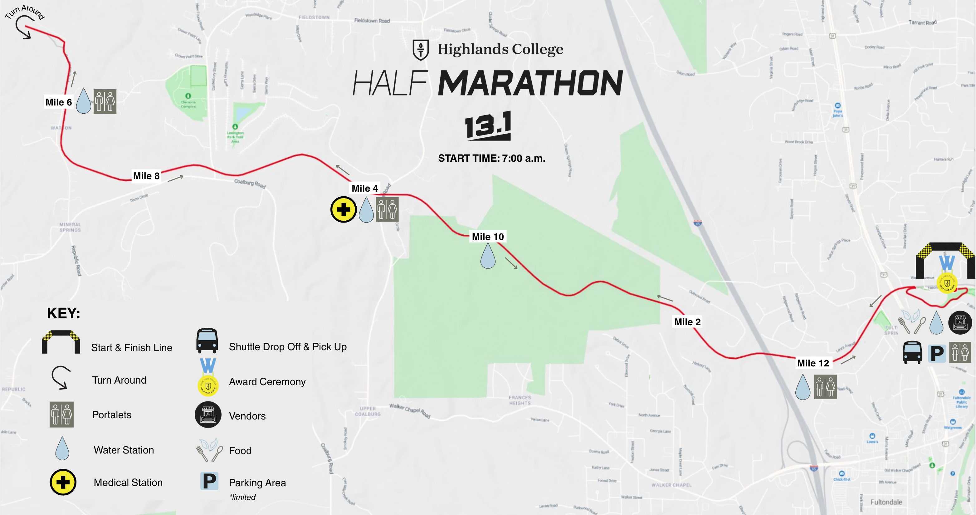 - Half Marathon: 7:00 a.m.